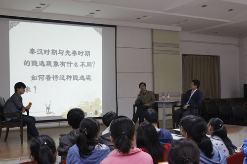 在会场上,两位老师就先秦及秦汉史学习中遇到的问题与大家进行了深入的探讨,同学们也抓住这次机会与老师们积极互动,提出了许多自己在读相关历史资料时发现的问题及学习中遇到的问题,两位老师均给予了悉心解答。