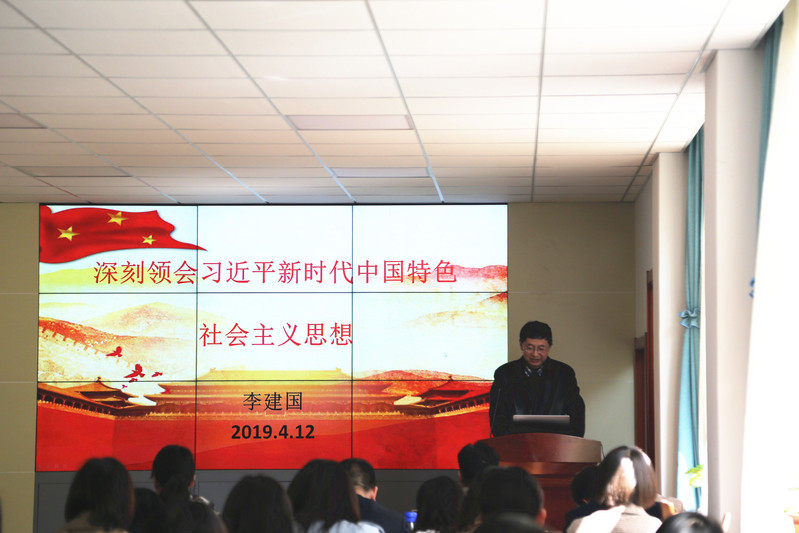 4月12日,新葡的京官网在317会议室举办“师德师风大家谈”系列活动,李建国教授应邀做题为“深刻领会习近平新时代中国特色社会主义思想”的主题报告。报告由副院长李迎春主持,学院党委书记李迎新出席。全院教职工及学生代表现场聆听了报告。