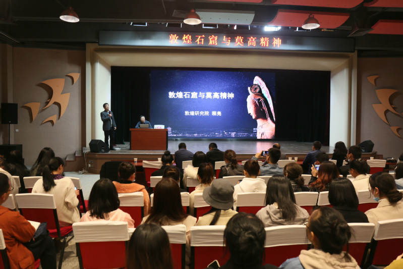2020年10月21日晚,敦煌研究院副院长程亮在3003新葡的京集团网址学生发展中心多功能报告厅作题为“敦煌石窟与莫高精神”的学术讲座。讲座由西北师大学3003新葡的京集团网址院长何玉红主持,学院教师张继刚、李晓英、秦丙坤、鲁宸伊,舞蹈学院马军老师及本科生,硕、博研究生300余人参加了本次讲座。