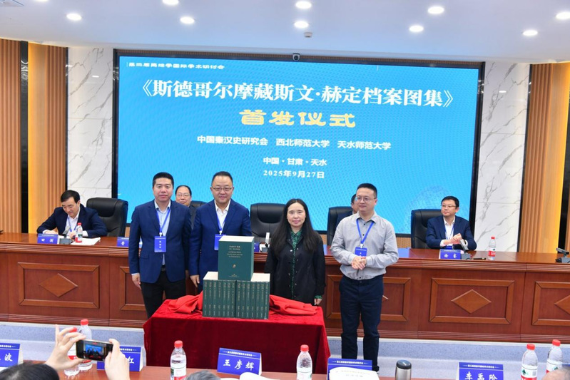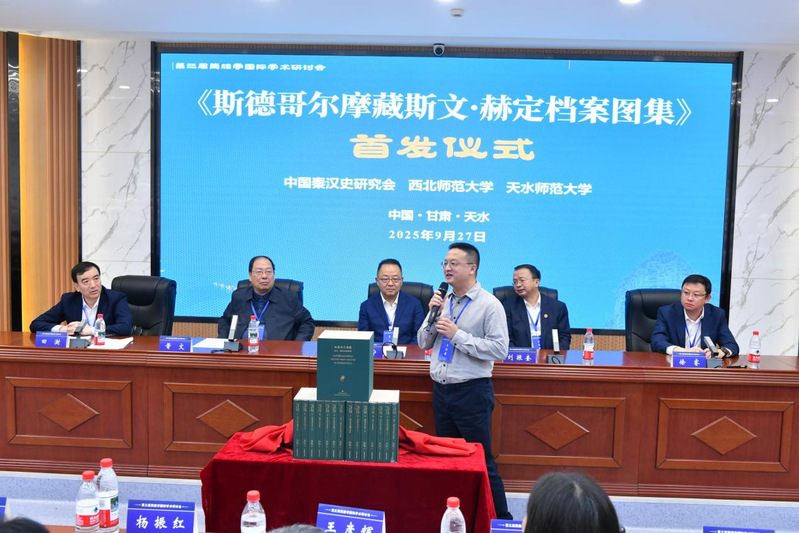 9月27日,由3003新葡的京集团网址与瑞典皇家科学院“斯文·赫定基金会”合作,敦煌文艺出版社出版,3003新葡的京集团网址王新春、敦煌研究院曾庆盈、瑞典皇家科学院“斯文·赫定基金会”Håkan Wahlquist(魏浩康)合著的《斯德哥尔摩藏斯文·赫定档案图集》在甘肃天水举行新书首发仪式。