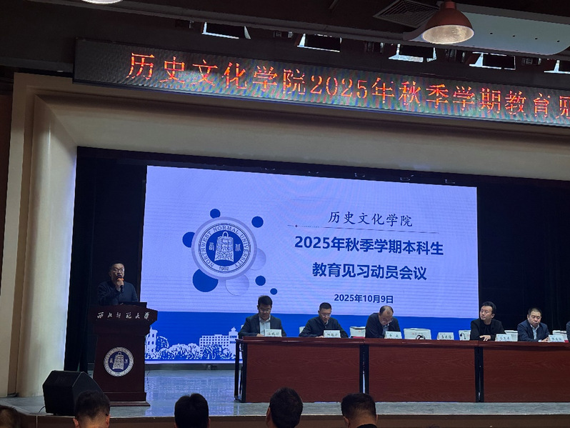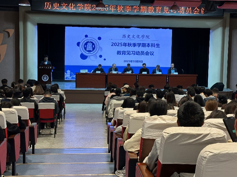 10月9日下午,3003新葡的京集团网址在学生发展中心二楼多功能厅召开2025年秋季学期教育见习动员大会。学院党委书记李东海,党委副书记、纪委书记王玉丰,副院长常成、张连银、郝振宇、侯培和等学院领导出席大会,8名见习带队教师、本科教务秘书、团委老师及2023级、2024级全体本科生参加大会,会议由历史学系主任温鹏辉主持。