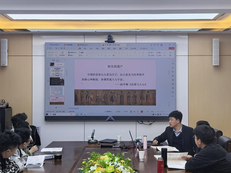 其次,杨超老师深入探讨了如何完成从史学知识的“接受者”到课堂“引导者”的身份与能力转变,实现从理论认知到教学实操的知行合一。一是精研课件设计艺术。在课件制作环节,杨老师进行了细致入微的讲解,涵盖了字体选择、字号搭配、色彩运用、图文排版乃至动画效果设置等方面。他始终强调,任何教学设计都须臾不可脱离新课标理念的指引,课件作为教学的重要载体,必须精准服务于课程目标的达成。二是启发教学深度思考。杨老师运用高考真题作为引子,激发教学智慧。他结合近年真题中关于唐代藩镇割据的论述,分享了“藩镇延续唐祚”的观点。以此鼓励准教师们跳出教材窠臼,在教学中融入批判性思维和学术前沿视角,引导学生进行深度探究。三是践行对比教学思维。杨老师以科举制与九品中正制的对比教学为例,生动阐释了如何引导学生从“存在即合理”的历史情境论视角出发,理解不同制度的产生背景、运行逻辑及其历史作用,从而培养其辩证的历史观和制度分析能力。这种对比不仅深化了知识理解,更是历史思维训练的有效途径。