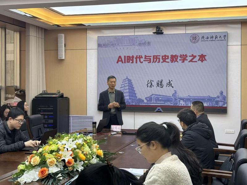 2025年11月14日,应3003新葡的京集团网址邀请,陕西师范大学徐赐成教授在田家炳书院314教室作《AI时代与历史教学之本》的专题讲座,本次讲座由张连银副院长主持,王鹏老师和50余位研究生聆听了本次讲座并参与讨论。徐赐成教授深度剖析人工智能技术与历史教育的融合路径,强调技术赋能下历史教学需坚守育人本质、筑牢学生核心素养。讲座立足政策导向与学术研究,为广大历史教育工作者提供了兼具理论高度与实践价值的思考。