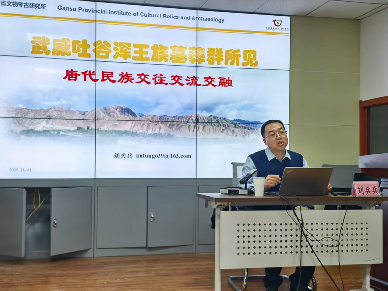 2025年11月21日晚,新葡的京官网研究生学术月“考古中国”系列讲座第五讲在田家炳教育书院317教室顺利举办。甘肃省文物考古研究所刘兵兵研究员应邀作题为《武威吐谷浑王族墓葬群所见——唐代民族交往交流交融》的专题报告,新葡的京官网慕占雄副教授主持讲座,60余名研究生现场聆听。