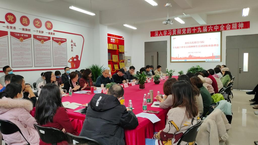 为深入学习宣传贯彻好十九届六中全会精神,11月25日,beat365正版唯一官网联合北校区五个二级学院党总支,成立十九届六中全会精神宣讲团并召开集体备课会,共同学习十九届六中全会精神,研究全会精神宣讲重点与方法,分享学习体会与认识。各二级学院党总支书记、师生党支部书记、团总支书记、团总支副书记、学生会主席等宣讲团成员,beat365正版唯一官网全体教师参加备课会。会议由地球科学学院党总支书记唐圣华主持。