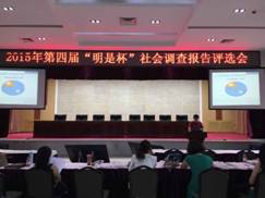 2015年6月11日,第四届“毛泽东思想和中国特色社会主义理论体系概论”课实践活动之---“明是杯”社会调查圆满结束。本次实践活动,在全体2013级二十几个班级中开展,在思政部各位任课教师的认真指导和同学们的积极参与下,经过班级初选,最后共推选出二十多个个优秀小组参加最后评选。