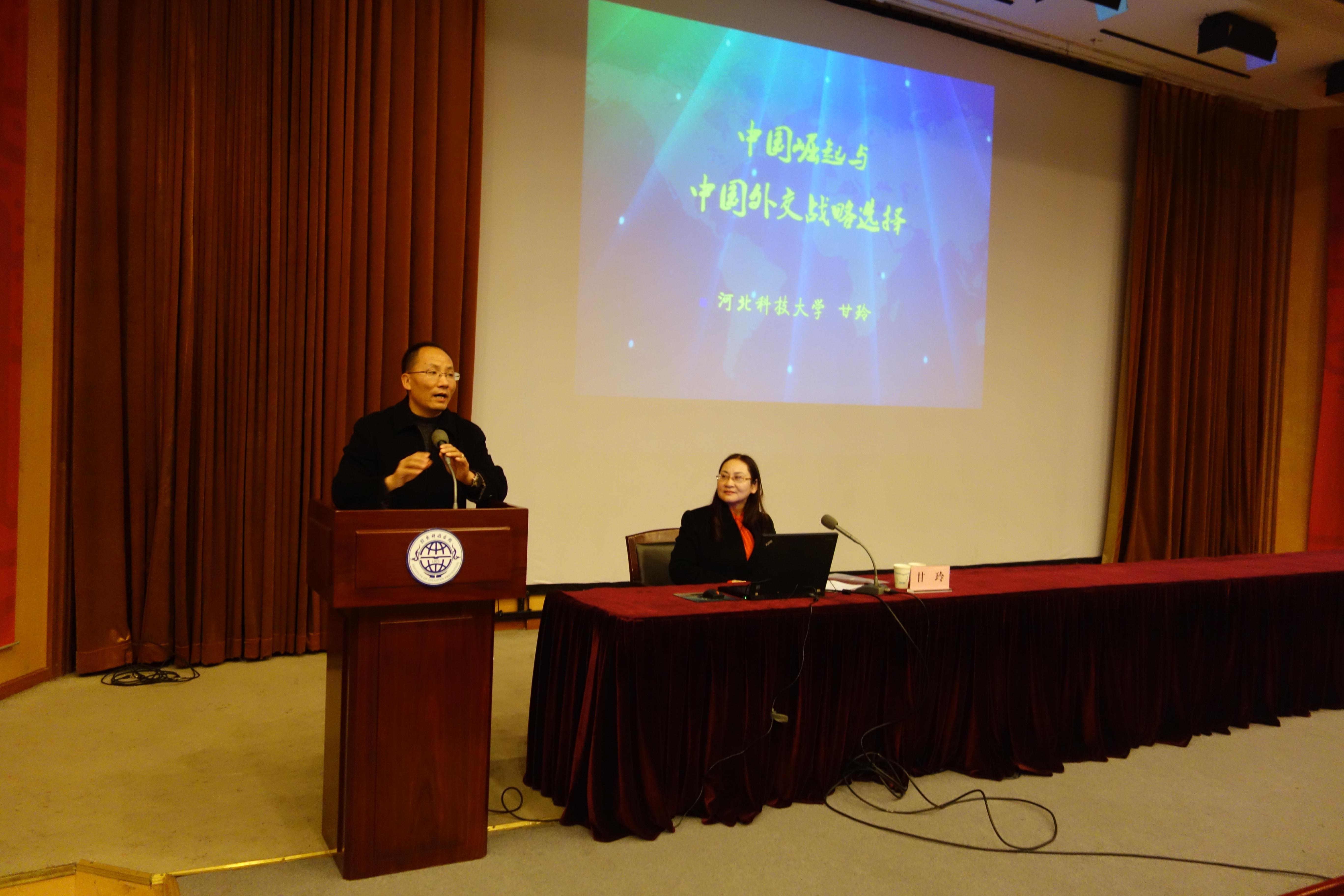 2016年11月4日,应思政部邀请,全国高校思政课教学指导委员会委员、河北科技大学beat365正版唯一官网院长甘玲教授在图书馆报告厅给我院400余名师生作了题为“中国崛起和中国外交战略选择”的时事报告。报告从中国崛起面临的形势与挑战、中美两大国的碰撞与竞争、中国外交从危机管理到战略推动三个方面,深刻解析了中国和平发展所面临的复杂严峻的国际形势和我们积极主动的应对战略,报告站位高、思路清、内容丰、案例精、分析透,使听讲者深受教益。