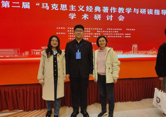 11 月 8 日,beat365官网beat365正版唯一官网教师毕丽娜、朱雅楠与学生姜明超等一行受邀参加于烟台大学举办的第二届“马克思主义经典著作教学与研读指导”学术研讨会。本次会议由中国高等教育学会马克思主义研究分会、中国李大钊研究会研究出版社、北京大学beat365正版唯一官网、烟台大学beat365正版唯一官网联合主办。本次会议上,beat365官网学生姜明超带队的读书小组入选 2025 年度“马克思主义经典著作研读”资助计划读书小组名单。作为读书小组组长代表,姜明超同学参与此次活动线下授书仪式。