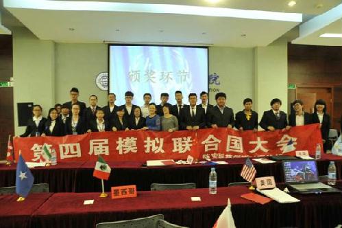 2015年5月30日晚7时,防灾科技学院第四届模拟联合国大会在图书馆多功能厅顺利举行。大会由思政部下属的大学生时事论坛协会举办。特邀华北科技学院信息工程安全学院外联部和华北科技学院人力资源协会成员参与。此次活动本着学术交流的原则,促进了协会的对外发展战略同时也增强了两校同学间的友谊。