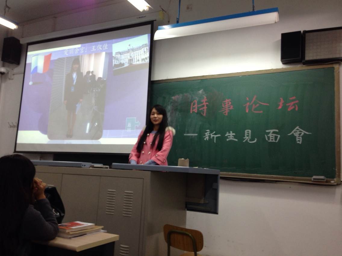 2014年10月25日晚上19点30分大学生时事论坛招新见面会在南校召开,指导老师何艳老师以及思政部田艳天老师亲临现场。会长、副会长及各宫宫主自我简介,然后各个新成员逐次自我介绍展现风采,大家畅所欲言,其乐融融。期间主持人带领大家做游戏更是把气氛渲染到高潮,最后指导老师何艳老师总结发言。会议持续了2个小时,期间欢声笑语不断,新成员为协会注入了新鲜的血液,带来了新希望,这更是让我们看到了协会壮大的希望! 承载梦想,放飞希望,协会的梦,我们的梦。让我们期待协会新一届成员扬帆起航,走向更远的前方。