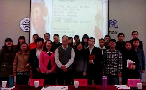 为纪念伟大领袖毛泽东诞辰120周年,哲学爱好者之家于2013年12月13日晚在图书馆多功能厅举行了“纪念毛泽东诞辰120周年·毛泽东诗词朗诵会”。思政部贾作璋老师、黄萍老师、刘胜男老师、何艳老师和哲学爱好者之家指导老师赵元老师出席了活动。